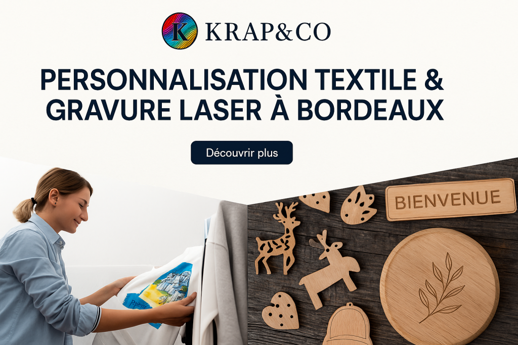 En complément du textile, Krap&Co propose la gravure laser pour tous vos besoins de personnalisation ou de marquage.